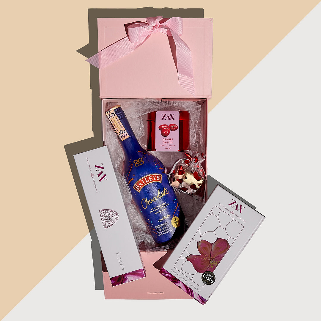 Náš ZAX ROSE LUX Box je určený pre ozajstné gurmánky, ktoré si radi pochutia ako na kvalitnej čokoláde tak na prémiovom likéri. Toto exkluzívne darčekové balenie je plné remeselných čokoládových dobrôt ZAX doprevádzaných likérom Baileys Chocolate. Doprajte si tento luxusný balíček pôžitkov a potešte seba, svojich blízkych či firemných partnerov.
